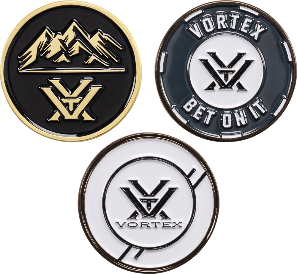 Always be prepared with a variety pack of Vortex® ball markers. Each marker can be used interchangeably in the Center Cut Camo divot tool.