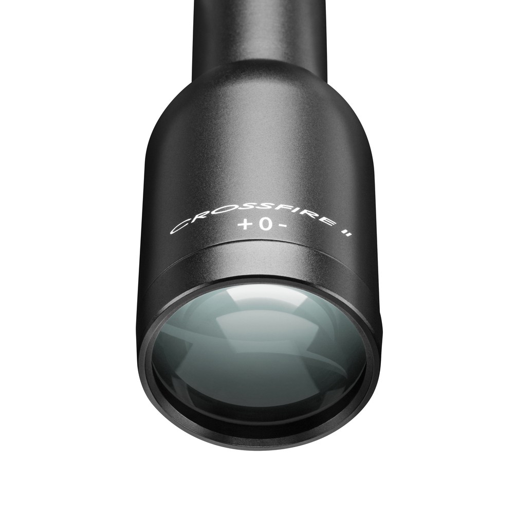 Our compact, rugged Crossfire II 1x Muzzleloader scope satisfies "no magnification" rules and provides a crystal-clear and ultra-bright unmagnified view. With generous 3.8 inches of eye relief and a vast, 95-foot field of view at 100 yards, the fully multi-coated optics and V-Plex reticle assure accurate shot placement in low light conditions.