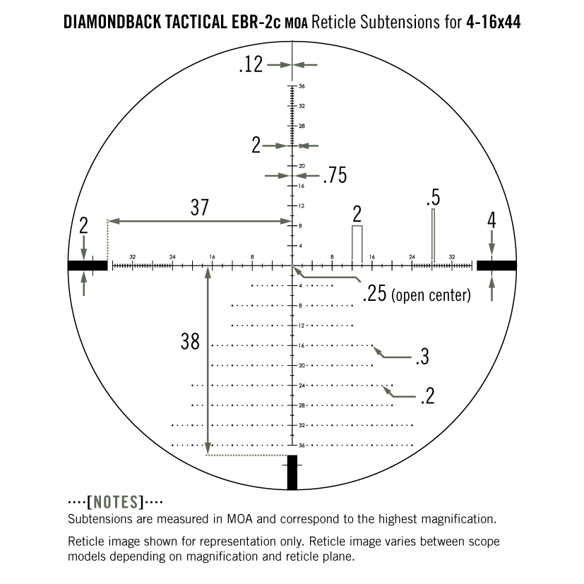 Vortex presents affordable first focal plane (FFP) riflescopes. The first focal plane reticle, a feature ordinarily reserved for 4-figure-priced optics, allows shooters to use the information-packed EBR-2C reticles for ranging, holdovers or windage corrections on any magnification. Housed inside its durable, one-piece aluminum tube is a 4x optical system delivering excellent edge-to-edge clarity and sharp resolution. Exposed elevation and windage turrets are low profile enough to stay out of the way in packing situations, but offer the quickness, ease and precision of dialing accurate shots at distance. A side adjustable parallax gives shooters peace of mind by removing parallax error from the equation from 10 yards to infinity.